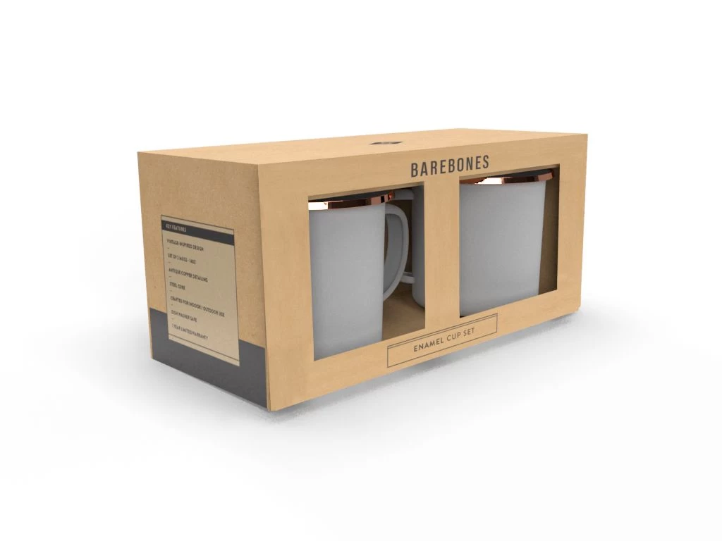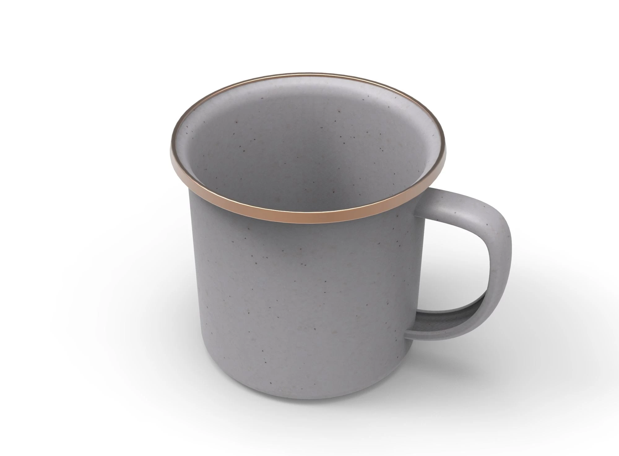 Barebones Emaille Beker – Uw kopje koffie bij zonsopgang heeft er nog nooit zo uitnodigend uitgezien dan met de schittering van de zon op de prachtig koperen rand van uw Barebones mok (9.5 cm diameter).