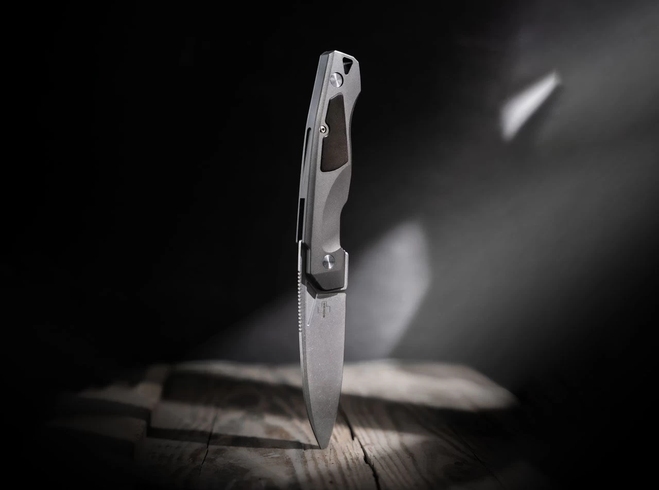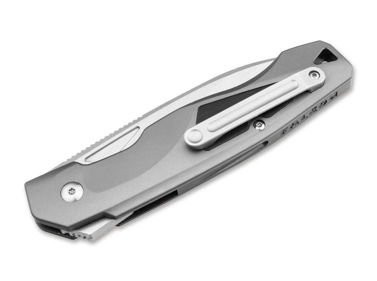 Het zakmes is voorzien van een kogelgelagerd stonewash lemmet van D2 staal, dat een fraai geslepen patroon heeft en handig met een flipper geopend wordt. Een stevige linerlock neemt de vergrendeling over, terwijl groeven in het gebied van de duimsteun het werk nog veiliger maken. Het grijze handvat is van driedimensionaal gefreesd aluminium en heeft ergonomische vingeruitsparingen en een fraaie houten inleg. Daarnaast heeft het handvat decoratieve schroeven, een koordoog en een gefreesde clip (tip-up/r).