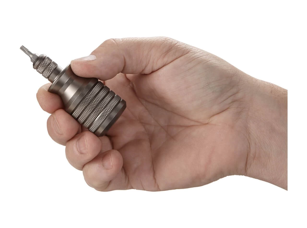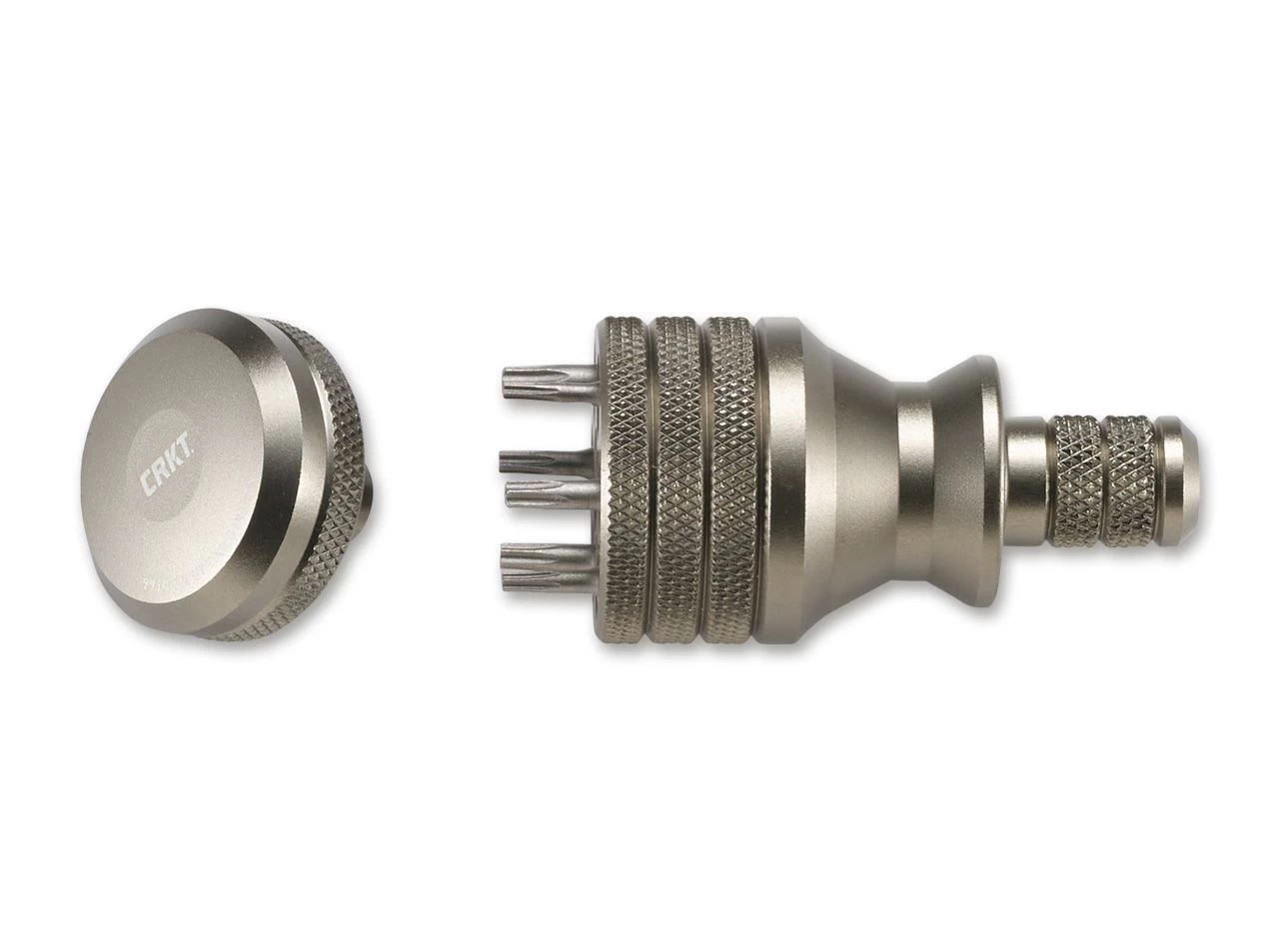 CRKT 6 Bit Driver Tool – Klein maar fijn – dat is het motto van de CRKT 6 Bit Driver Tool Torx van ontwerper Joe Wu. Het kleine gereedschap past in elke zak en bestaat uit een krasbestendige aluminium behuizing, die 6 Torx bits bevat in de maten T6, T7, T8, T9, T10 en T15. Het deksel van de schroevendraaier beschermt tegen het verlies van de bits en biedt extra grip tijdens het werken dankzij het gestructureerde oppervlak. De magnetische kop houdt de bits stevig op hun plaats.