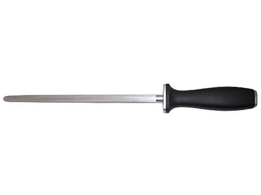 Diamant Sabatier aanzetstaal 23 cm, in etui – voorstuk van hardverchroomd roestvrij staal. Heft van zwart Polypropyleen, vaatwasserbestendig (max.95 graden). Voor keuken en professie. Levenslange garantie. In etui.