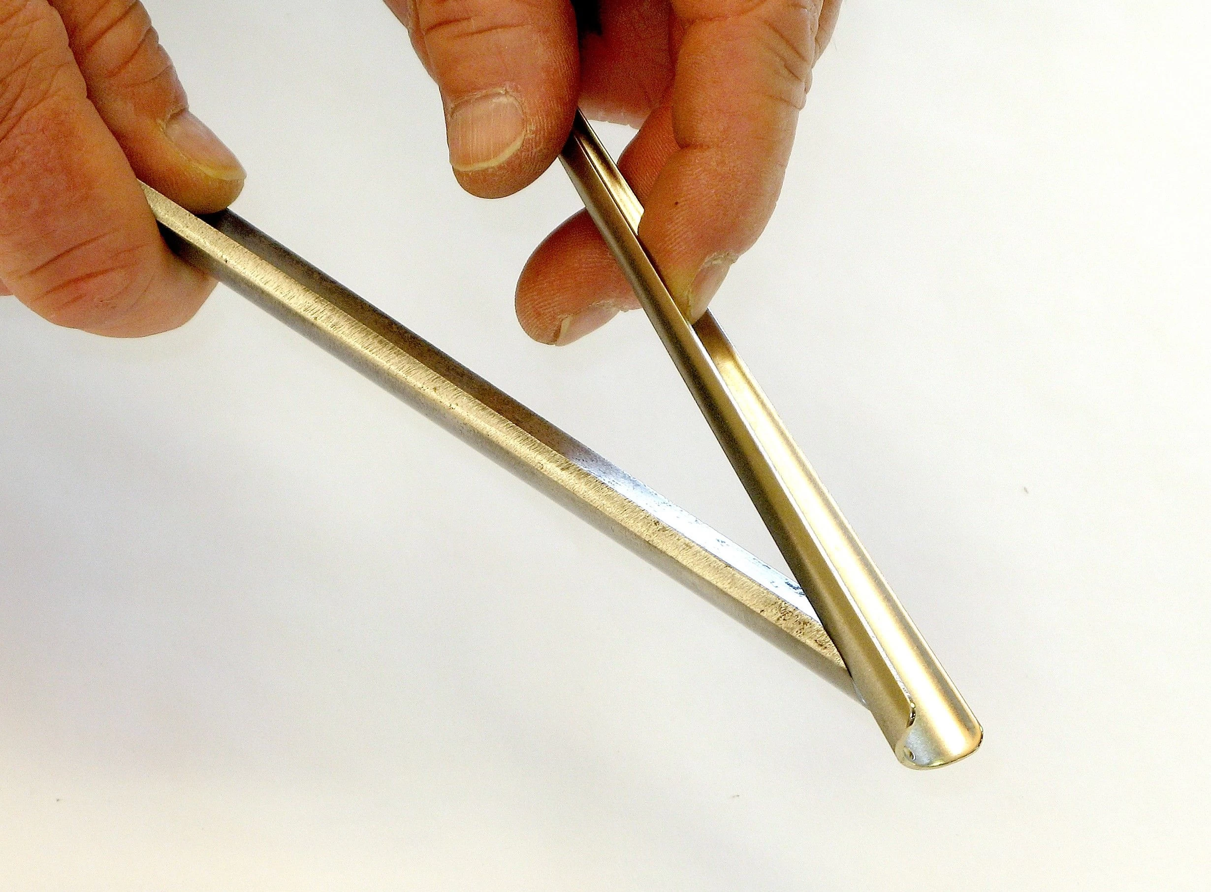 DMT DCMF half ronde conische diamanslijpsteen – De DCMF is een half ronde conische diamantvijl, welke aan de bolle zijde gediamanteerd is met een fijne diamantlaag van 25 micron, c.q. 600 mesh. De bolling loopt va 9,5 mm tot 19,1 mm over een totale lengte van 152 mm.
