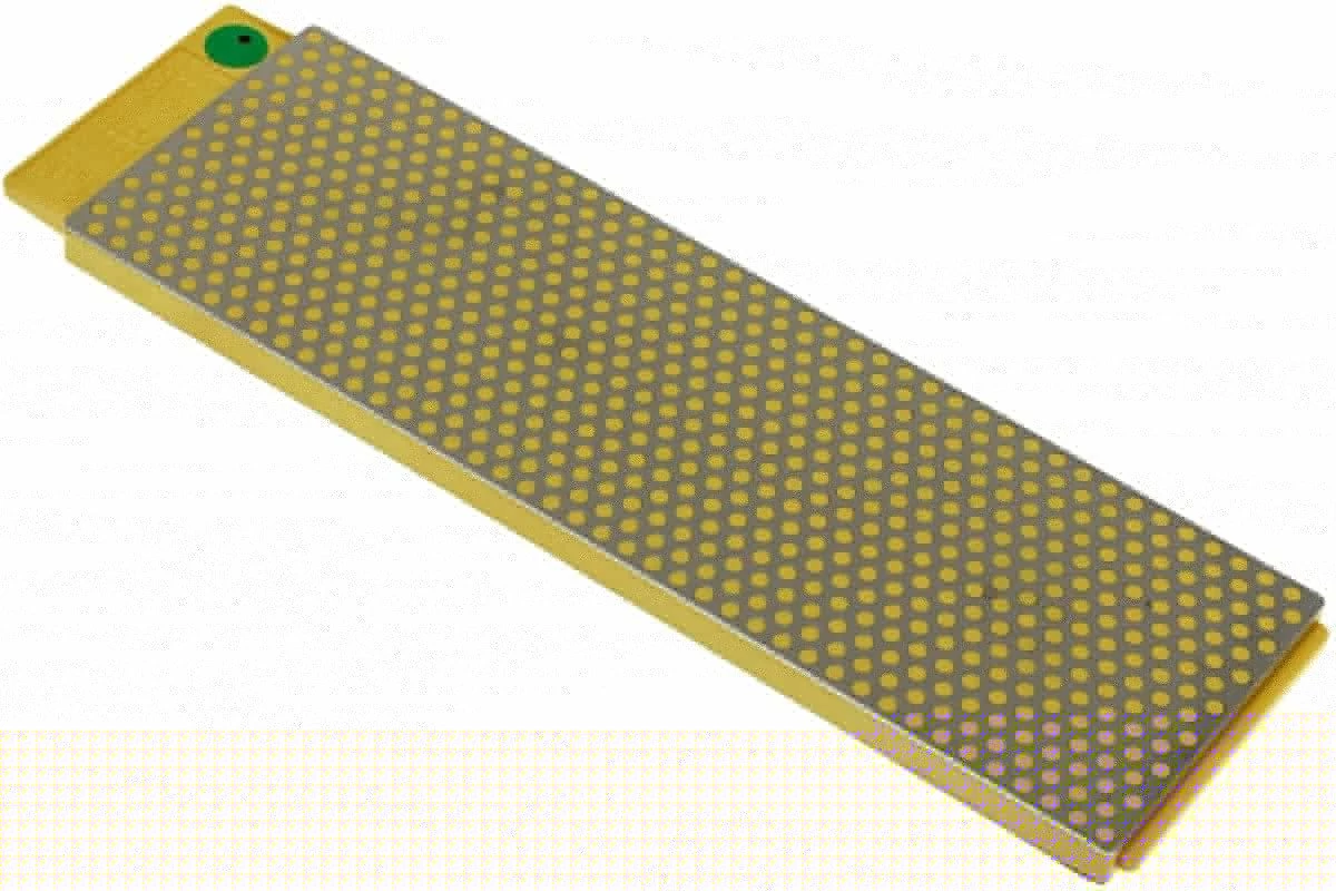 DMT DuoSharp Dubbelzijdige Diamant Slijpsteen Fijn / Extra Fijn – Ideaal voor het slijpen van grote messen of gereedschap. deze benchstone voor elke keuken, vooral in combinatie met de DuoBaseâ„¢ werkbank. De lengte van 20 cm is perfect voor beitels, koksmessen, vrijwel elk gereedschap. Hoewel het een royaal slijpoppervlak biedt, is het ontworpen om lichtgewicht, compact maar ook robuust te zijn. Het is voorzien van twee zijdes, extra fijn (9 micron / 1200 mesh) en fijn (25 micron / 600 mesh), met allebei een andere korrelgrootte. De groene, extra fijne diamantslijpsteen wordt gebruikt om te polijsten, te wetten en om fijn te slijpen. De rode, fijne diamantslijpsteen wordt gebruikt om te leppen, te wetten, te slijpen en na te slijpen. Slijpen met diamant is snel en gemakkelijk. Geen oliën nodig – slijp droog of met water.
