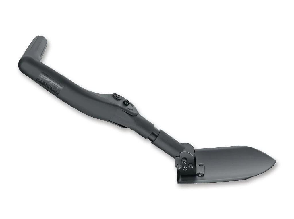 FKMD Folding Spade Tan Sheath – Deze bijzonder veerkrachtige opvouwbare spade maakt indruk met zijn uitzonderlijke ontwerp. De geavanceerde technologie en het gebruik van hoogwaardige materialen maken het verschil. De T-greep, die dwars op de met glasvezel versterkte steel is geplaatst, maakt uiterst efficiënt werken mogelijk, zelfs bij uiterst harde oppervlakken. Het blad van gehard 420 roestvrij staal garandeert een lange levensduur van de vouwspade. Om meer te kunnen doen dan alleen “graven”, heb je de mogelijkheid om het blad van de spade in een hoek van 90° (schoffel), 135° (schop) of 180° (spade) te vergrendelen. Dit garandeert een langdurig gebruik zonder vermoeidheid bij verschillende soorten werk. Een cordura tas is inbegrepen.