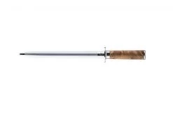 De VG10 Forged Diamond aanzetstaal is verpakt in een luxe houten kist. Let op: het aanzetstaal is niet vaatwasmachine bestendig.