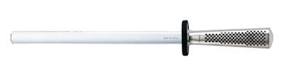 Global G38 aanzetstaal diamant 26 cm – Global messen kun je het beste slijpen met een diamanten aanzetstaal. Hierdoor blijven ze langer scherp en dit garandeert de duurzaamheid van de messen. De platte aanzetstaal heeft een laag met synthetisch diamant waarmee je je mes slijpt. De aanzetstaal gebruik je over de volle lengte, welke 26 cm lang is. In tegenstelling tot ieder klassiek aanzetstaal heeft deze de werking van een slijpstaaf. Zo slijpt de aanzetstaal je mes door er telkens een kleine hoeveelheid metaal af te slijpen, waardoor deze weer vlijmscherp wordt. Hoe minder druk je uitoefent, hoe scherper het mes wordt. De messen van Global moeten worden geslepen in een hoek van ongeveer 15 – 17 graden. De stalen handgreep met kunststof ring beschermt je handen tegen uitschieten. Het aanzetstaal kun je het beste met een vochtige doek reinigen.