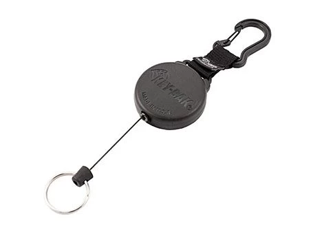 Key-Bak 28″ Securit Retractor Sleutelhouder – Deze retractor met een koordlengte van 71 cm heeft een draagkracht 550 gram waardoor er meer dan voldoende sleutels aan vastgemaakt kunnen worden. Het koord is van kevlar met een splitring aan het uiteinde en de behuizing is van zwart polycarbonaat . Deze retractor is voorzien van een karabijnhaak zodat deze aan bijv. een riemlus bevestigd kan worden.