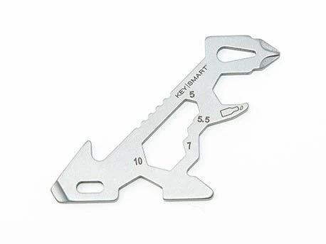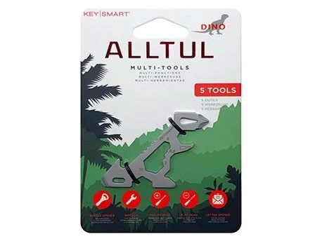 KeySmart Alltul Dino – een kleine maar vernuftige multitool om aan je sleutelhanger te bevestigen. Met een flessenopener, platkop schroevendraaier, kruiskop schroevendraaier, moersleutels nummer 5,5 – 7 – 8 en 10. Een handig tooltje om iedere dag bij je te hebben.