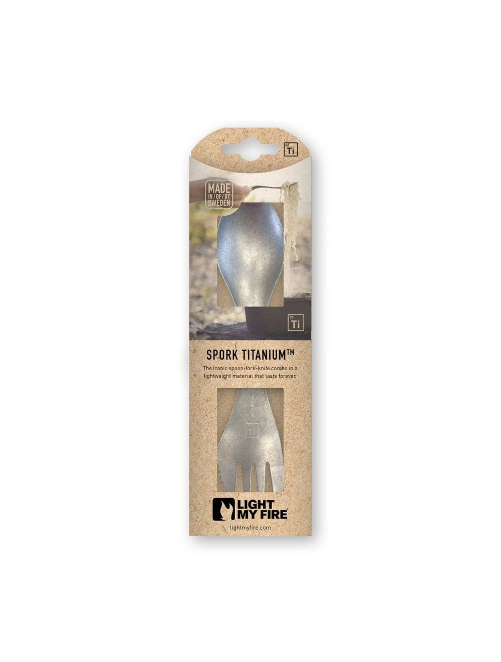 De LMF Eco Spork Kit Titanium, een stuk bestek voor het leven. Een Spork is de ideale combinatie van lepel, vork en mes. Gemaakt van 100% G2 Titanium waardoor deze spork praktisch onverwoestbaar is en geen metaal smaak afgeeft aan het voedsel. De spork is roestvrij en gemakkelijk te reinigen.