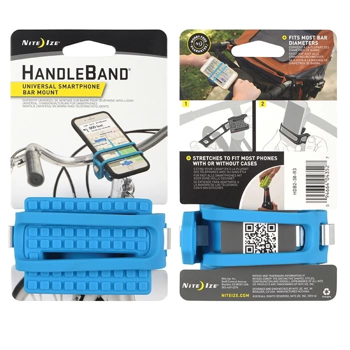 Nite Ize Handle Band blauw – Met deze universele, blauwe, Handle Band kunt u de meeste mobiele telefoons veilig aan een stuur bevestigen, met of zonder een hoes. Hierdoor is de telefoon gemakkelijk te zien en toegankelijk tijdens het rijden, wandelen of hardlopen. Doordat het gemaakt is van lichtgewicht en soepel siliconen, met een aluminium basis als kern, kan het gemakkelijk en veilig aan bijna elke maat staaf – inclusief fietsen, kinderwagens en winkelwagentjes – bevestigd worden. De aluminium bevestigingshoek is tevens als flessenopener te gebruiken.