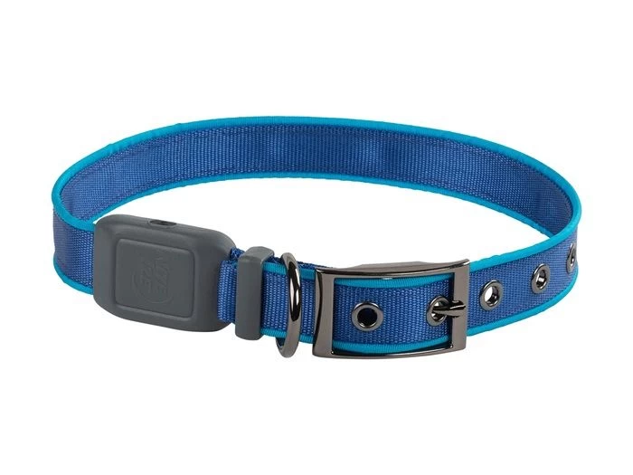 De halsband heeft twee standen (Glow en Flash). Optische vezeltechnologie zendt licht over de gehele lengte van de halsband zonder verlies van lichtopbrengst en biedt zowel een constante gloei- als flitsmodus. De riemgespsluiting en D-ring zijn van hoogwaardig metaal.