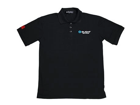 Olight Poloshirt Zwart M – Dit is een fraai zwart poloshirt met het logo van Olight op de voor- en achterkant. De polo is in de maat M (165-170).