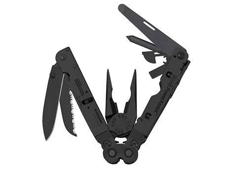 Een multifunctionele tool. 13 onderdelen. Geleverd in een nylon etui.