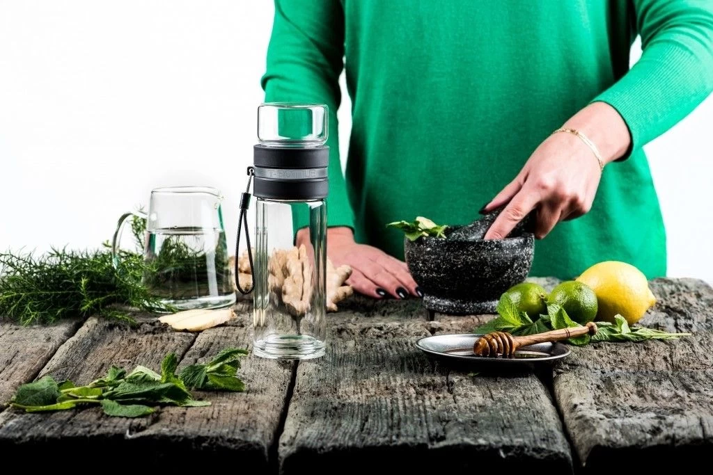 T-BOTTLE Charcoal Grey – T-BOTTLE Charcoal Grey – De T-BOTTLE is een ware revolutie voor alle theeliefhebbers. Perfect om mee te nemen of om thuis van te genieten. Voeg thee, kruiden, specerijen & fruit naar eigen smaak toe in het daarvoor bestemde compartiment. Vul de T-BOTTLE met water en in een handomdraai zet je de heerlijkste verse thee. Het dubbelwandige glas zorgt ervoor dat het water langere tijd op temperatuur blijft en je je handen niet verbrand. De T-BOTTLE is ook uiterst geschikt, om koude dranken mee te maken. De T-BOTTLE komt in 4 trendy kleuren en is een fantastisch cadeau om te geven of te krijgen. De glazen gedeeltes en het zeefje zijn geschikt voor de vaatwasmachine.