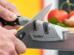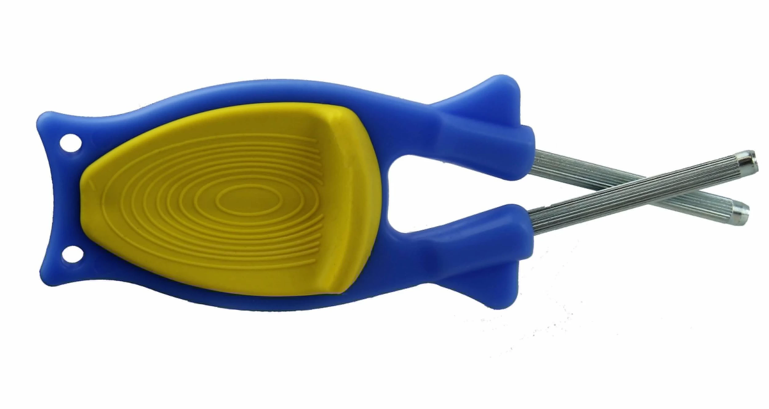 The Block Sharpener 2.0 Blauw – Geel – Messenslijper – Een messen slijptool met flexibel (buigbare) slijpstaven en rubberen anti-slip greep. Deze handige meeneem tool meet slechts 14 cm en is 4,5 cm breed. De slijptool weegt 41 gram. Aan de onderzijde van de slijptool is een rubberen klem bevestigd, waarmee je de tool stevig tegen een tafel aan kunt leggen zonder dat deze verschuift. De slijptool van The BlockSharpener is wereldwijd bekend en geroemd. Je kunt er alle soorten messen mee slijpen, broodmessen, gladde messen, bijlen en scharen.
