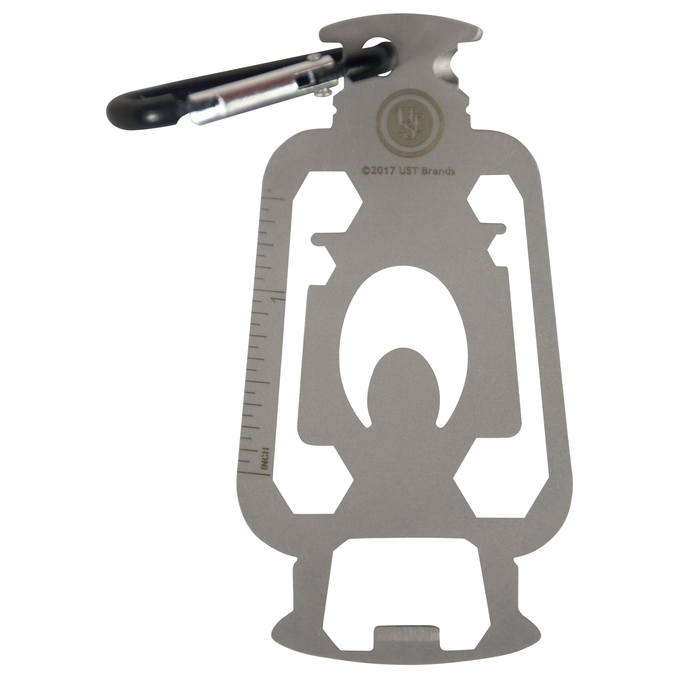 UST Lantern Tool A Long Multi-Tool – Dit is een roestvrijstalen multitool van UST in zakformaat die de vorm heeft van een lantaarn. Hij is ontworpen om een verscheidenheid aan outdoor taken buitenshuis of onderweg uit te voeren. Met de aanwezige karabijnhaak kun je de tool gemakkelijk aan je riemlus of rugzak hangen. Daarnaast is deze multitool TSA-compliant voor veilig reizen. De tool is voorzien van de volgende gereedschappen: koordsnijder, moersleutel (6 formaten), flesopener, vlinder moersleutel, liniaal en karabijnhaak.