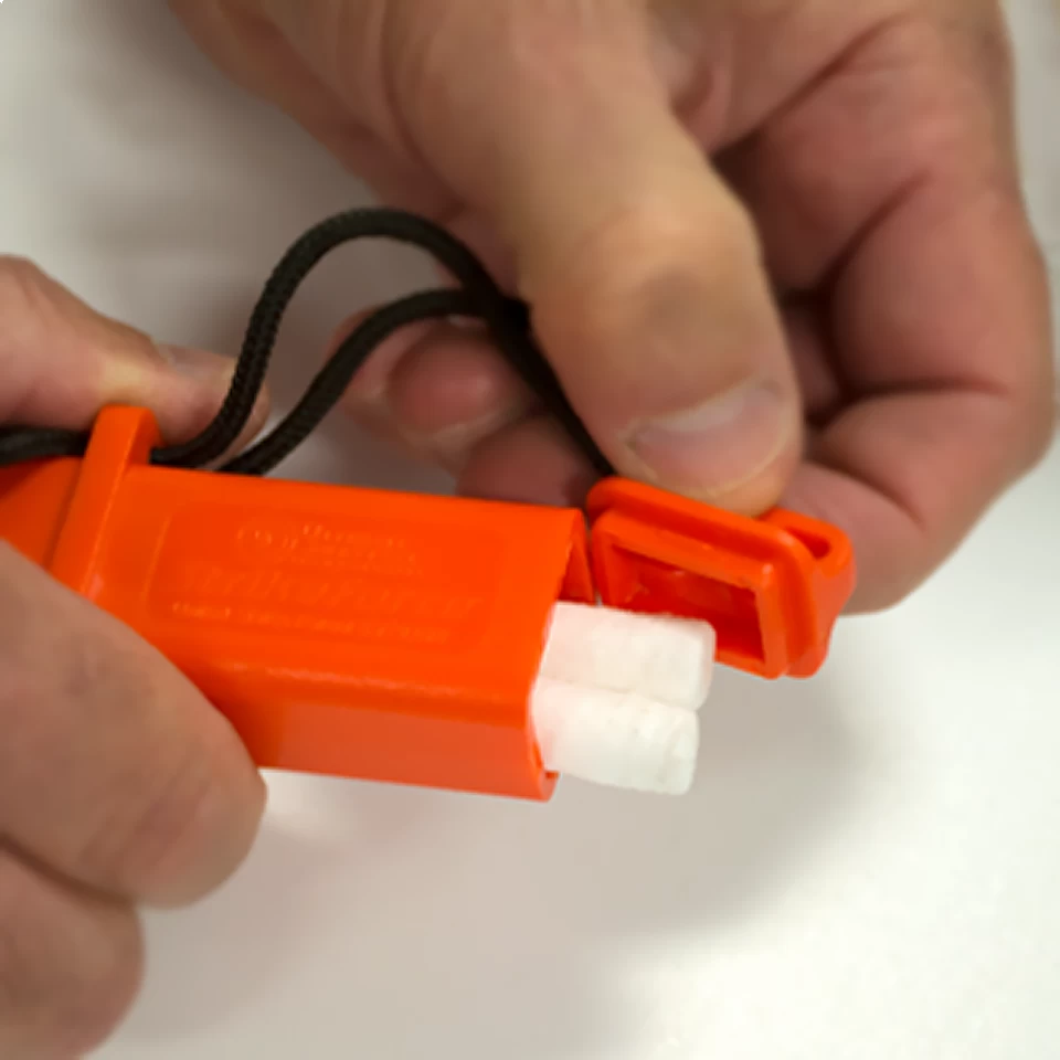 UST StrikeForce Fire Starter with Tinder Orange – deze firestarter levert vonken in diverse weersituaties. Meegeleverd zijn 2 stuks Light-me tinder. Een extra koordoog aan de firestarter is aangebracht voor additionele attributen. De striker is geintegreerd in de kap, zodat je eventuele loskomende vonken gemakkelijk op kunt vangen.
