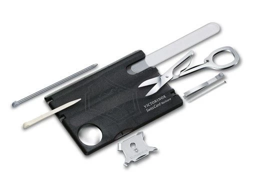 Victorinox SwissCard Nailcare zwart – Transparant zwarte SwissCard van Victorinox, model Nailcare. Met de volgende 13 functies: 1. glasnagelvijl 2. schaar 3. pincet 4. tandenstoker 5. balpen 6. rvs pin 7. lineaal (cm) 8. lineaal (inches) 9. vergrootglas 10. schroevendraaier 3 mm 11. schroevendraaier 5 mm 12. kruiskopschroevendraaier 00-0 13. kruiskopschroevendraaier 1-2. Gemaakt met Zwitserse precisie en vakkundigheid. Levering in geschenkdoosje. Levenslange garantie.