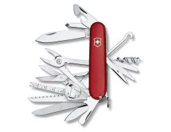 | Gereedschappen | Groot lemmet, klein lemmet, schaar, multi-functionele haak, kurkentrekker, blikopener, schroevendraaier, flesopener, draadstripper, steek-boor-naaipriem, sleutelring, pincet, tandenstoker |