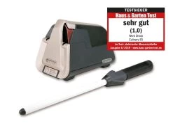 Work Sharp Culinary E5 – De Work Sharp Culinary E5 tilt het slijpen van keukenmessen naar een nieuw niveau. De uiterst gemakkelijke bediening wordt niet alleen gegarandeerd door de hoekige geleiders van het apparaat, maar ook door de met een timer geregelde slijpintervallen en de verschillende snelheden van de geïntegreerde slijpbanden. Bovendien zorgen de automatische en geheel onderhoudsvrije ingebouwde afzuiging van het slijptof en het stille werkgeluid voor schoon en stil werken, zodat het aanrecht niet in een werkbank verandert. Dit topmodel heeft drie verschillende slijpsnelheden: Voor het vormen van een rand, voor het slijpen en voor het fijn slijpen. De volautomatische timerbesturing zorgt voor optimaal op elkaar afgestemde slijpintervallen. De extra keramische aanzetstaal met een bruikbare lengte van 20 centimeter heeft een grof en een fijn slijpvlak en bovendien een hoekgeleider en biedt de mogelijkheid om tussendoor handmatig de scherpte op te vijzelen. Met de extra Micro-Forge kan een gladde snede in seconden veranderd worden in een micro-kartelrand. 220V netaansluiting en wordt geleverd met twee schuurbanden (Medium /P120).